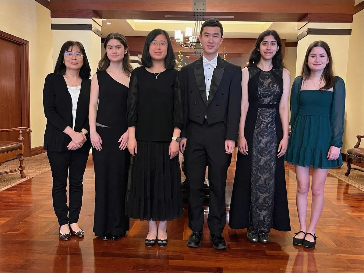 The original 5 pianists with their teacher. Reunited Photo was taken after the recital at Longhorn Village on May 18, 2024. Left to Right: Julia, Amelia, Isabelle, Ira, Aditi, and Catelyn.